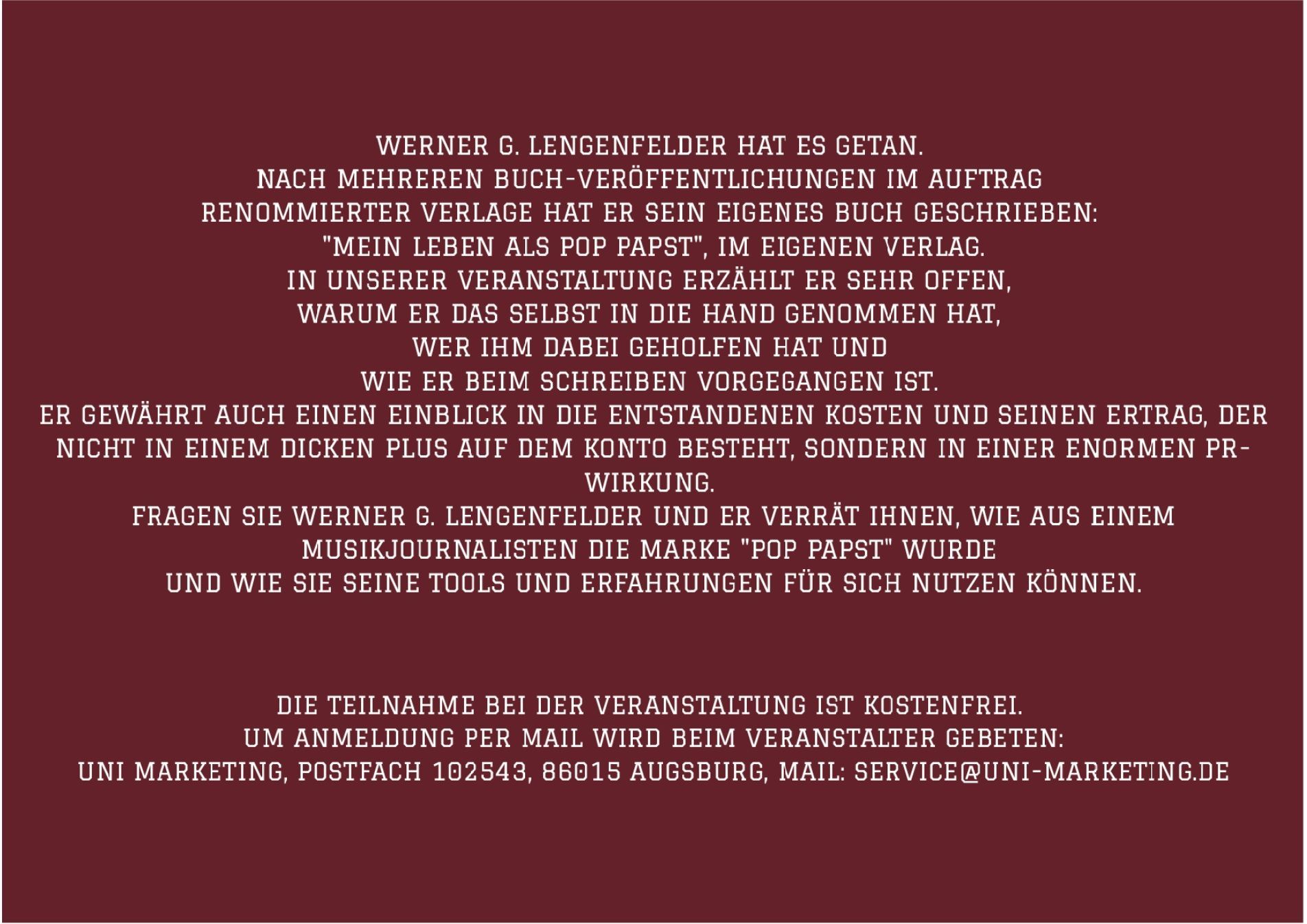 Interessenten an den Zukunftsplänen und der Erreichbarkeit sowie Begeisterungsfähigkeit der Generation Z heißen wir bei UNI MARKETING. Herzlich Willkommen.
